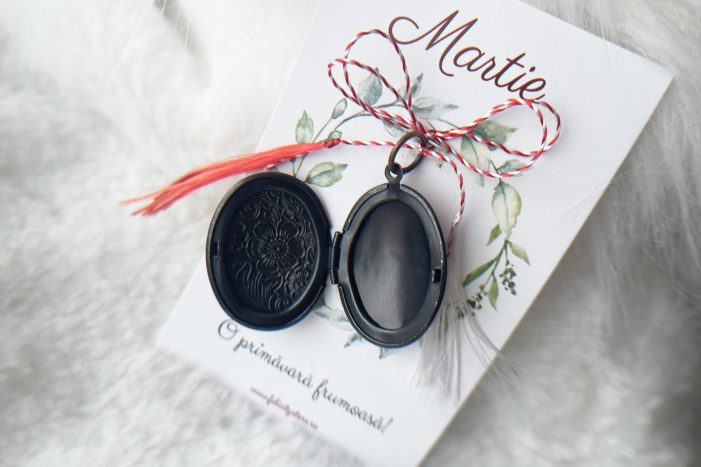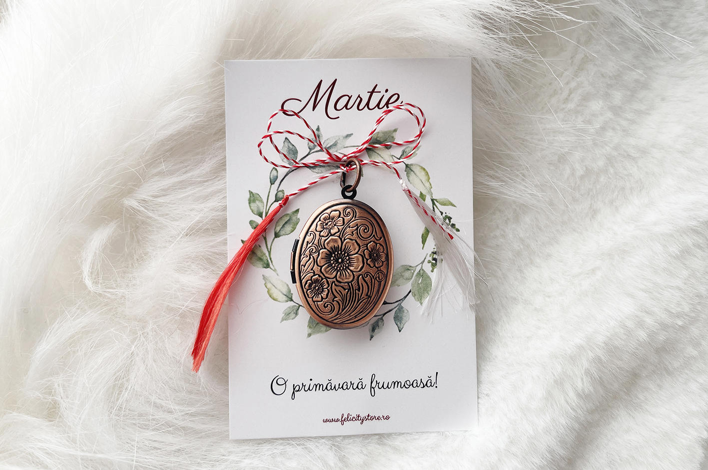 Medalionul vine pe cartonaș alături de o fundiță tip mărțișor;
