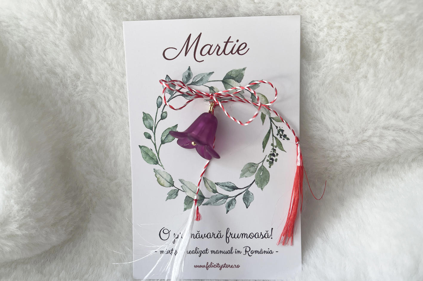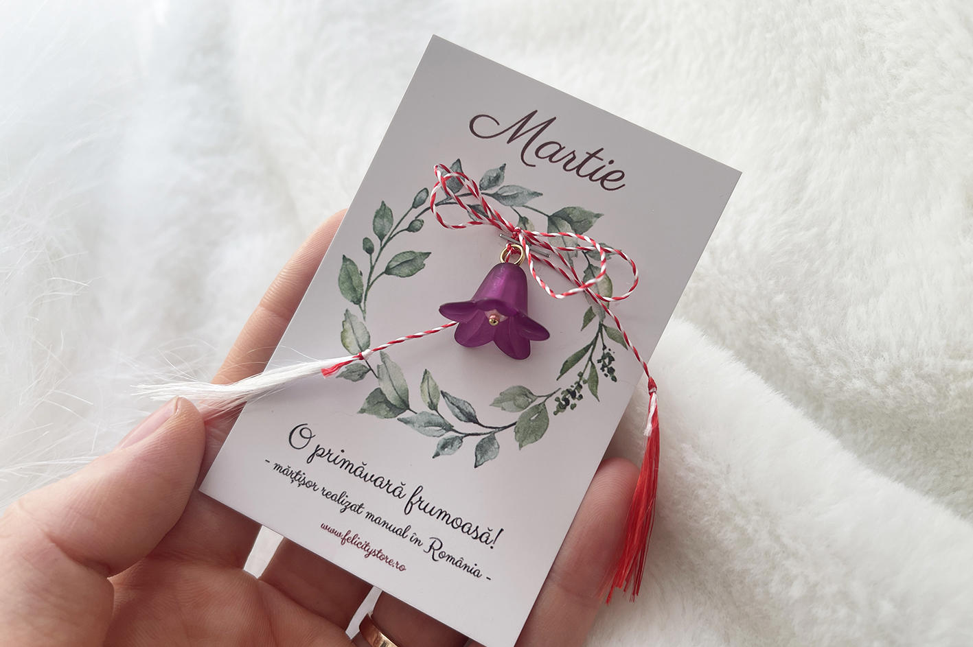 Textul de pe cartonaș, în partea de jos, poate diferi. Edițiile realizate începând cu anul 2026 poartă mențiunea „Mărțișor realizat manual în România”.